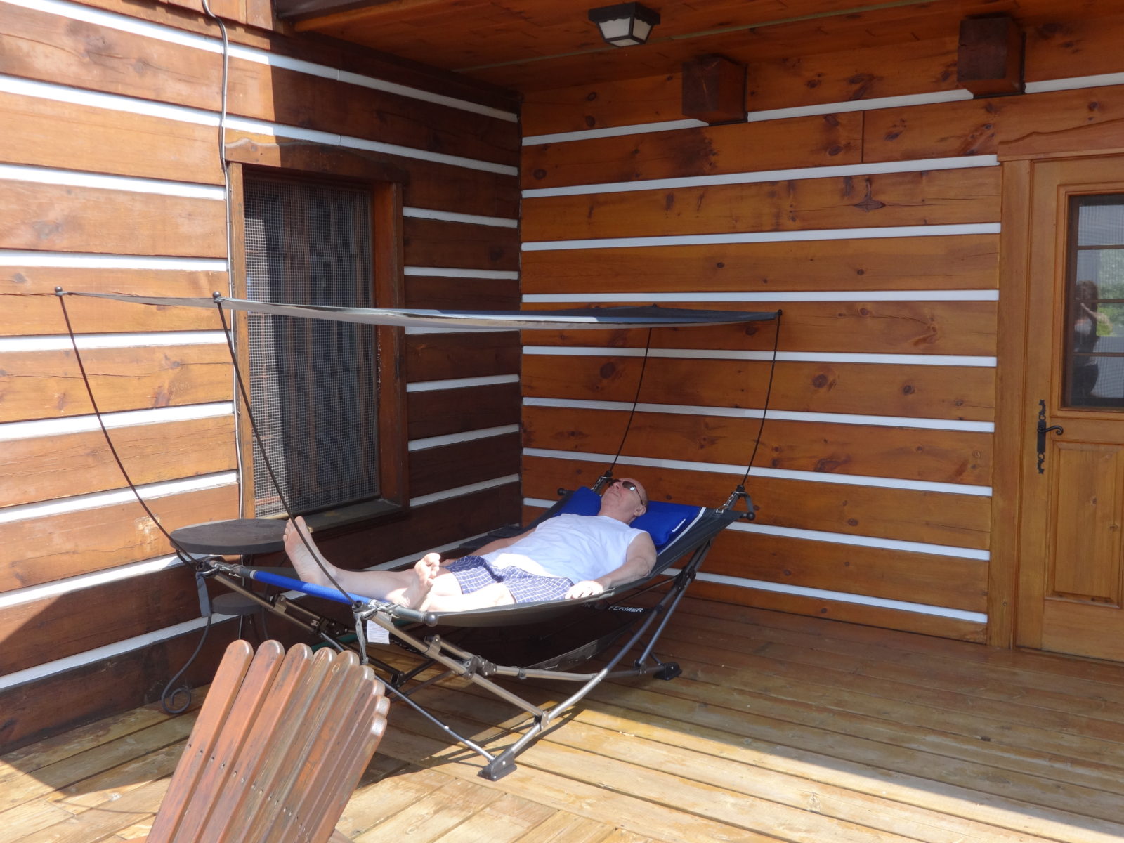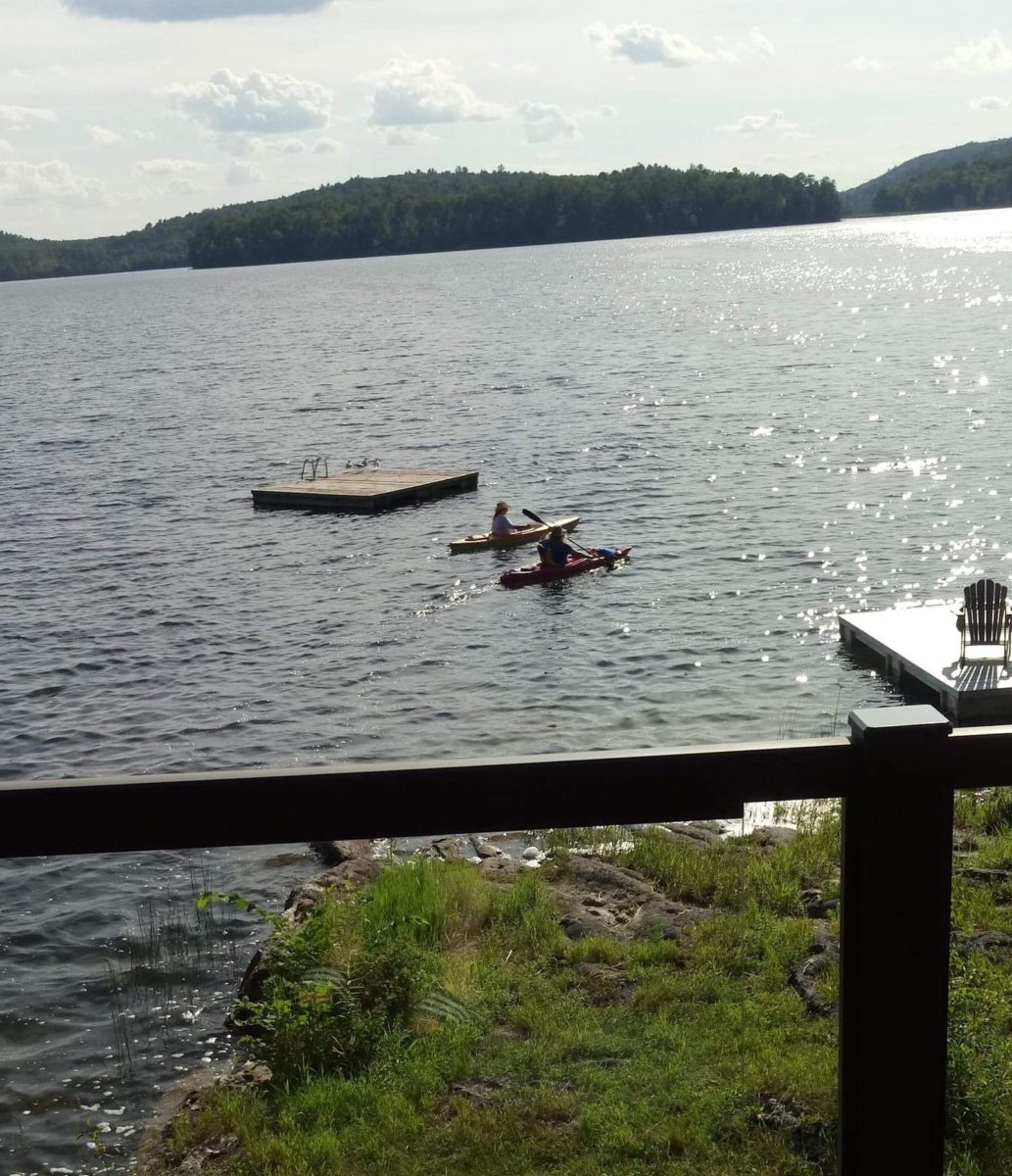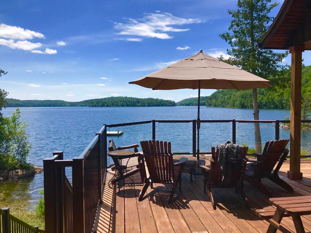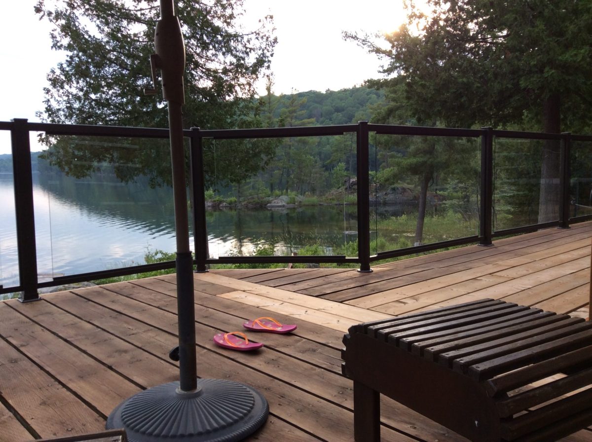 Enjoy a panoramic view of Lac Ste Laurent from our 100 foot long deck. The glass bannister offers an uninterupted view of the lake’s expanse, our floating dock and swimming raft. Toast in the sunshine in one of many Adairondack chairs or kick back in the shade under the umbrella. We’ll leave you to negotiate who gets the hammock when, and for how long.