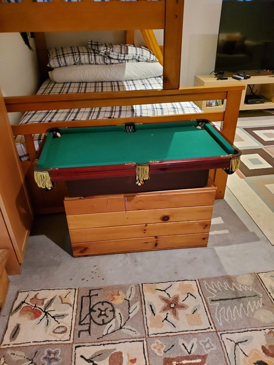 We offer two adult sized kayaks and one child-sized one. You’ll also find our grandfather’s row boat and our canoe, all ready for you.