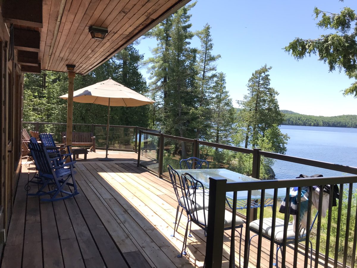 Relaxing and comfortable, our four-season Chalet Cook Cottage is nestled in the woods in Point Comfort, Quebec. Peaceful and tranquil, this secluded hideaway sits in unspoiled wilderness less than 90 minutes’ drive from Ottawa. A 100′ deck overlooks the lake, and inside, you’ll find four bedrooms, 2 1/2 baths, full kitchen, dining room, living room and family room.