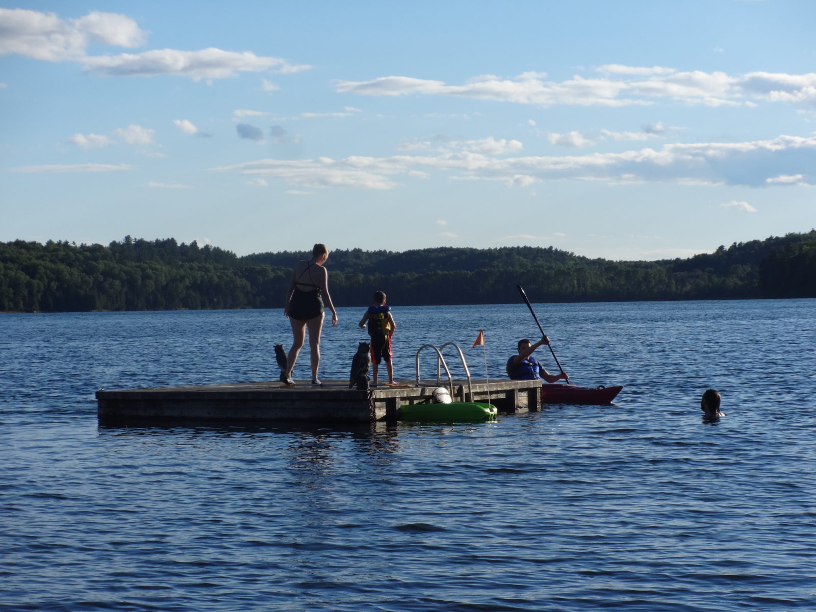 Our swimming bay is not deep – so shallow dives off our dock only please! Swim, kayak or canoe out to our raft and toast in the sun.